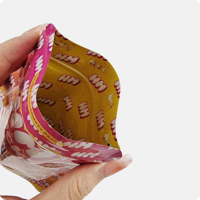 Inside printed pouches adopt internal printing technology, keeping the outer surface clean and smooth while hiding brand patterns inside. This design brings a subtle and premium unboxing experience for high-end food and skincare products.
